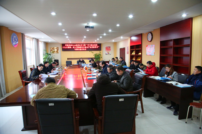 12月28日下午,党委中心组理论学习暨“学习领会党的十九大精神、深入贯彻落实全面从严治党新要求”专题交流讨论会在学院行政楼306会议室召开。院领导汪上、湛承鲲、余君琳、潘海波出席会议,各部门主要负责同志、各支部书记和列席中心组学习会议的有关负责同志参加了会议。会议由党委书记、院长汪上主持。