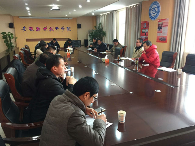 会议首先由李平总结了2017年度教务处的工作情况,提出了2018年作为教学改革年的整体目标。实训中心负责人赵开江总结了今年市级技能大赛的竞赛情况,并对省赛备赛提出了具体要求。王鑫详细通报了期末教学检查的相关情况,并对教师学期教学质量考核、学生成绩网上录入、教师业务档案归档等具体工作进行布置。