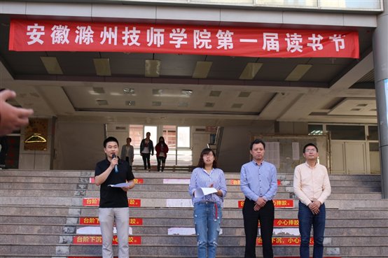5月23日下午16时,由滁州技师学院教务处、团委主办,经贸与信息工程承办的滁州技师学院首届读书节启动仪式在滁州技师学院北校区一楼大厅顺利举行。本次读书节的活动主题为“浸润书香 幸福成长”,出席本次活动的有:滁州技师学院教务负责人李平、团委负责人张婷婷、教务处王鑫老师,及各系部教师代表、团学干共计约300人。