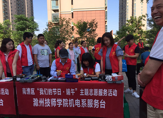 为弘扬中华民族优秀传统文化,积极培育和践行社会主义核心价值观,6月13日,由中共南谯区委宣传部主办,区文明办、区人大办、龙蟠社管中心承办2018“粽叶飘香迎端午 和谐邻里共创城”端午节主题活动启动仪式在南谯区龙蟠社管中心龙蟠南苑社区广场举行。学院机电系党支部书记罗旋、志愿者老师们以及青年志愿者分会的同学们参加此次活动。