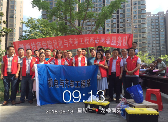 机电系青年志愿者分会一分队的同学们在电子教研组老师金验、熊静静的带领下发挥一技之长,为社区居民维修电器,宣传夏季安全用电常识。二分队的志愿者们和居民家庭一起参加包粽子比赛,糯米、粽叶、线等必备包粽子的材料整齐地摆上桌,十二组身着汉服的家庭各就各位。并将粽子赠与留守老人和孩子。三分队志愿者们在机电系团总支负责人黄芸的带领下开展了“双捡”活动。