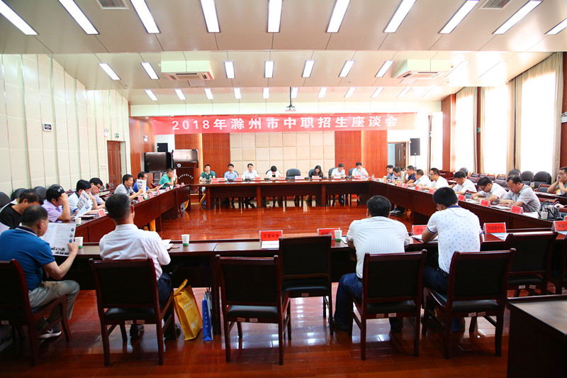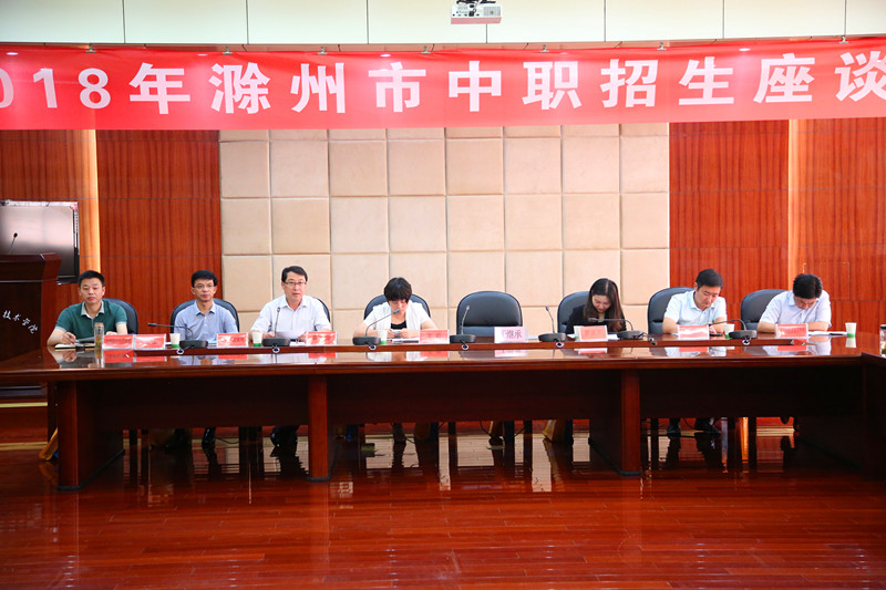 为贯彻落实《安徽省教育厅关于做好2018年中等职业学校招生和培训工作的通知》(皖教秘职成〔2018〕39号)要求,确保2018年滁州市中职学校招生工作规范有序,圆满完成招生工作任务。6月21日下午,由滁州市教体局主办,安徽滁州技师学院承办的“2018年滁州市中职招生座谈会”在滁州市职业技术学院11楼会议室顺利召开。市教体育局副局长王莉及市教体局相关科室负责人、琅琊区、南谯区教体局、琅琊区、南谯区初中学校(含民办初中学校)校长共27所中学60余人参加了会议。会议由市教体局职成科科长蒋新华主持。