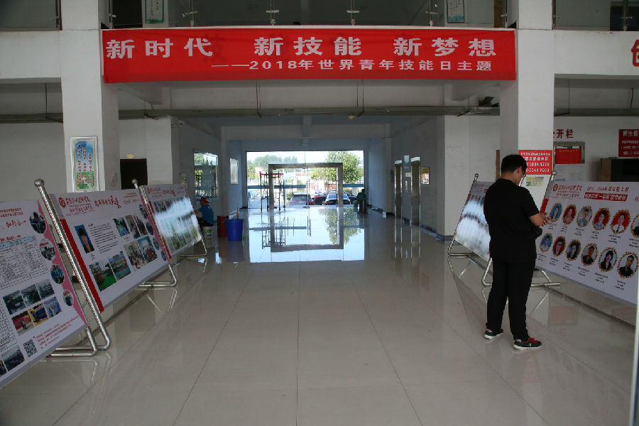 活动以展板、条幅、宣传册等形式围绕世界青年技能日主题进行了宣传,吸引了报名新生驻足观看。