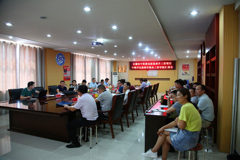 7月9日,省教育厅中职教育质量提升工程评估专家组洪应一行6人到我校开展“安徽省中职教育质量提升工程”建设项目中期评估省级实地验证性评估。市教体局副局长王莉、院领导班子成员、相关部门负责人、参与项目建设的老师等30余人参加了会议。会议由专家组组长洪应主持。