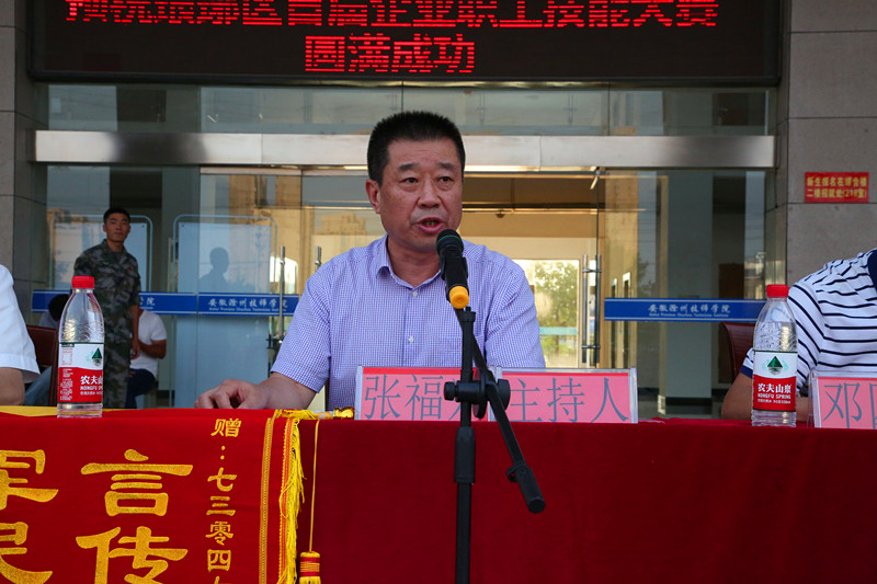 安徽滁州技师学院2018级新生军训闭营式于9月8日下午在南、北校区同时举行。学校党委副书记、纪委书记张福兴,副校长、党委委员湛承鲲、余君琳,中国人民解放军73047部队教官,学生处、团委、各系部主要负责人及全体新生班主任参加了闭营式。