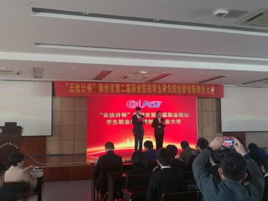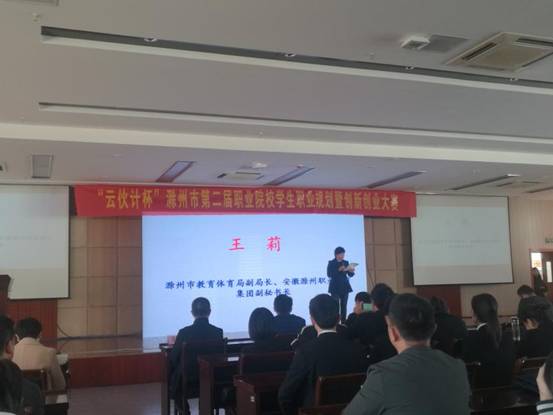 11月9日下午,由滁州市教育体育局和安徽滁州职业教育集团联合主办的“云伙计杯”滁州市第二届职业院校学生职业规划暨创新创业大赛在滁州职业技术学院举行。安徽滁州职教集团秘书长、滁州职业技术学院党委委员、校长助理穆松,安徽滁州职教集团副秘书长、滁州市教育体育局副局长王莉,云伙计电子商务集团有限公司董事长王黎等嘉宾亲临现场观摩比赛。