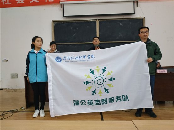 12月5日上午,社会文化艺术系在机电楼阶梯教室举行“蒲公英”志愿服务队授旗仪式。