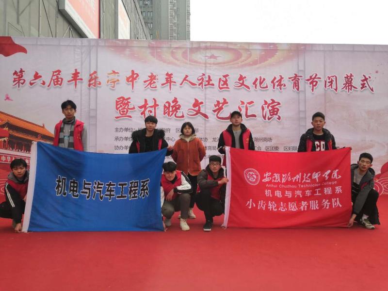 1月6日下午,安徽滁州技师学院小齿轮服务队助力南门公共服务中心举办第六届丰乐亭中老人社区文体节闭幕式暨村晚文艺汇演在辖区弘阳家居广场落下帷幕,本次文艺演出由琅琊区政府、琅琊区区委宣传部主办,南门公共服务中心、龙池社区、琅琊区老体协、弘阳家居滁州商场协办,琅琊区区委常委、宣传部长陈友利等相关部门领导参加此次活动。来自中心、辖区单位、居委及社区群众共计200多人参与此次文化盛宴。