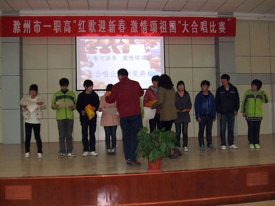 为迎接新年的到来,进一步加强校园文化建设,引导广大学生了解历史、铭记历史,弘扬艰苦奋斗、勇于实践的时代精神,增强爱国热情和振兴中华的责任感。12月27日下午,由校团委主办的“红歌迎新春,激情颂祖国”大合唱比赛在报告厅隆重举行,来自全校20多个班级的同学参加了比赛,现场气氛非常热烈。同学们以饱满的热情、洪亮的歌声,演唱了20多首经典红歌,一曲曲动人的旋律,带领大家回到那难忘的金色岁月,同学们用雄壮嘹亮的歌声抒发了对党、对人民、对祖国的无限热爱之情,用高亢激昂的歌声抒发勇往直前、奋力拼搏的情怀。比赛在一曲雄壮的《歌唱祖国》声中圆满结束,经过评委的紧张评判,10大专财会班、09电4班、10计网班摘得第一名,现场还举行了隆重的颁奖典礼。