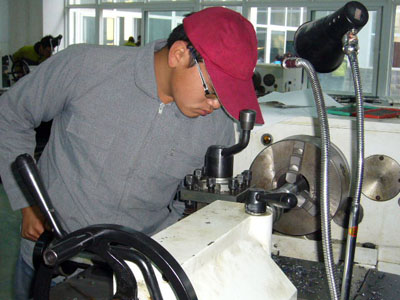 学生正紧张进行数控普车比赛