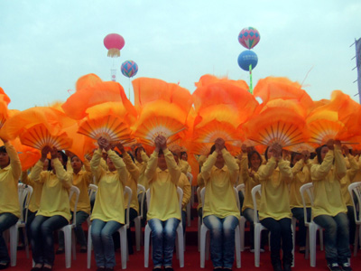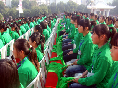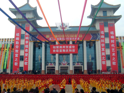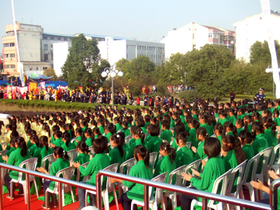 11月7日下午,“第二届中国农歌会开幕式暨安徽省第八届花鼓灯会大巡游”圆满结束了,我校承担开幕式演出互动方阵的08幼师班、09幼师班等8个班级的400名学生圆满完成任务,同学们出色的表现受到组委会的肯定和表扬。我校的方阵排练工作由团委副书记秦静老师统一负责,艺术组张娟娟老师、郝园园老师、顾冉老师配合组委会派来的安徽艺术职业学院的张磊老师教授6首歌曲的互动动作。排练自10月27日开始到11月6日结束,每天全天候排练。同学们非常珍惜参加这次活动的机会,积极配合,克服各种困难,认真投入排练。很多同学带病坚持,发着高烧吊完水又回到排练场地,令人感动。为了确保正式演出不出差错,动作到位,整齐划一,几位辅导老师付出了辛勤的汗水。 本次活动还得到了有关处室的大力支持。总务处安排人员为学生提供饮用热水,临时安装舞台照明用电灯,教务处妥善安排训练班级的课程等等。