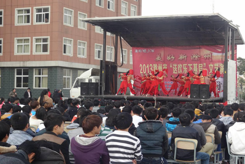 11月20日下午,滁州市机电工程学校广场掌声雷动,气氛热烈。由滁州市委宣传部主办、滁州市演艺公司承办的2013年“送欢乐下基层”文艺演出正在这里隆重上演。