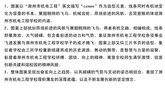 根据学校的安排,2013年10月底面向社会开展校徽征集活动,截止11月15日学校共收到来自省内外校徽设计方案共计19份来稿,从中筛除了部分重复内容,共选出16份方案参选。本次校徽征集评审活动学校本着公开,公平,公证的三评审原则,对所有设计方案的作品均采用盲投,即没有作者,只有图案,只有作品代号。