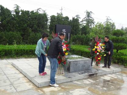 大家怀着崇敬的心情首先来到沈浩同志的墓前,默哀缅怀,向沈浩同志的墓碑敬献了花篮。随后大家共同重温了入党誓词。