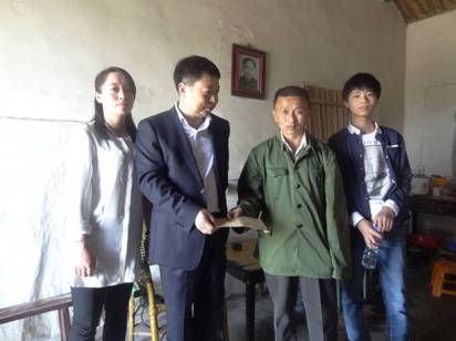 为深入开展党的群众路线教育实践活动,着力解决群众实际困难,在校党委副书记邹全胜的带领下,第六党支部对特困学生郭建强和孤儿杜柳叶同学进行走访。