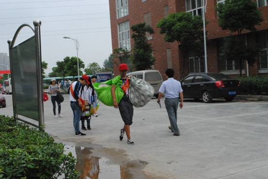 在现场,新生报到工作忙中有序:新生班主任们辛苦地工作,为新生办理报到手续;志愿者们有的举着提示牌、有的来回帮新生服务,提行李、指路线,热情地接待着学弟学妹们;前来报到的新生和家长在指示牌的指引下排队办理手续,报到现场井然有序。