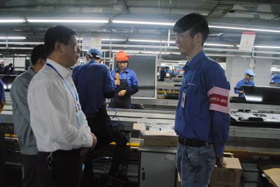 安徽康佳电子有限公司副总经理张可青陪同吴校长一行参观了学生在公司实习的生产线现场和就餐食堂。张可青副总经理充分肯定了我校毕业生的能力,指出我校学生踏实肯干、吃苦耐劳,专业知识扎实,有上进心,毕业后便可直接上岗,符合企业用工需求。校长吴大明对康佳电子长期以来对学校的支持以及为我校学生提供的实践锻炼平台表示感谢,吴校长还鼓励实习同学们不断学习,努力工作,不辜负学校和企业的关心。