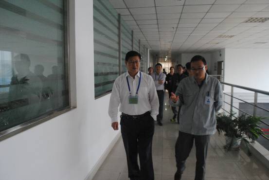 张可青副总经理向吴大明校长介绍生产线生产情况
