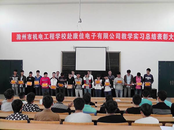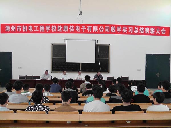 10月11日下午,我校在教学楼阶梯教室召开赴康佳电子公司教学实习总结表彰大会,校长吴大明、党委副书记邹全胜、教务处主任李平、学生处主任陶文格及参加教学实习的班主任和学生共百余人参加了会议,会议由学生处主任陶文格主持。