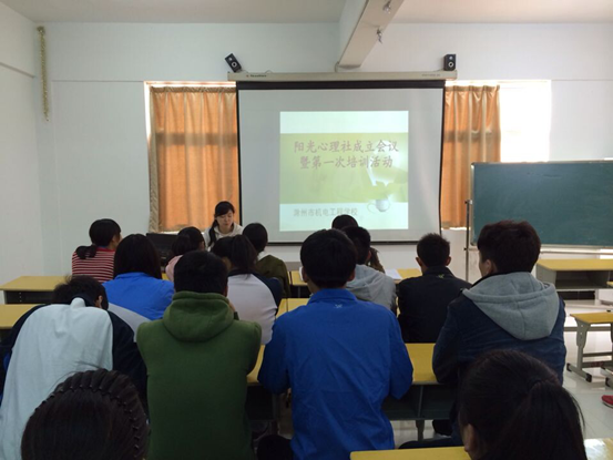 2014年11月6日下午,经学校批准,由团委牵头,心理咨询室组建和具体指导的,以中职学生为主体,开展与心理学相关活动的阳光心理社成立会议正式召开。阳光心理社的成立目的就是为了帮助同学们生活中遇到的一切与心理相关的问题,积极宣传心理健康教育知识,以自助、互助、他助等各种形式帮助同学们面对成长中的烦恼,帮助同学们认识自我、了解自我,处理好人际关系与情绪状态,成为一个积极的进取者。