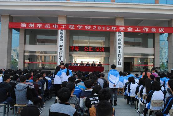 为贯彻落实上级有关安全工作的文件精神,增强我校学生安全纪律意识,结合我校近阶段的德育安全工作情况,4月14日下午,我校在行政楼广场前举行2015年学生安全工作会议,本次会议还邀请到腰铺镇派出所副所长周晓健出席。校长吴大明、校党委副书记邹全胜、副校长范明祥、学生处陶文格主任以及全体学生和班主任参加了会议。会议由邹全胜副书记主持。