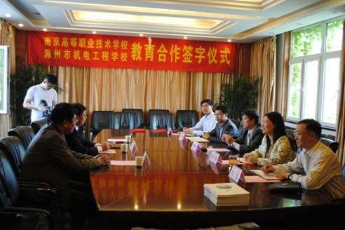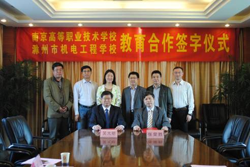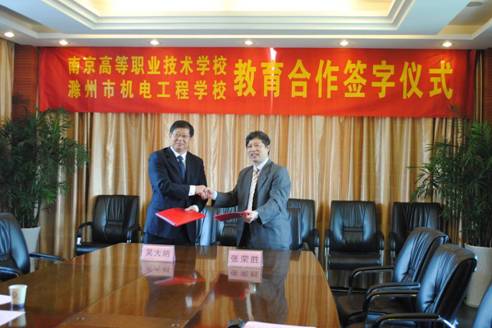 首先,南京高等职业技术学校张荣胜校长和我校吴大明校长分别就两校的基本情况、办学特点和校校合作的前景进行了介绍。然后,张荣胜校长和吴大明校长分别代表各自学校签署了校校合作协议。