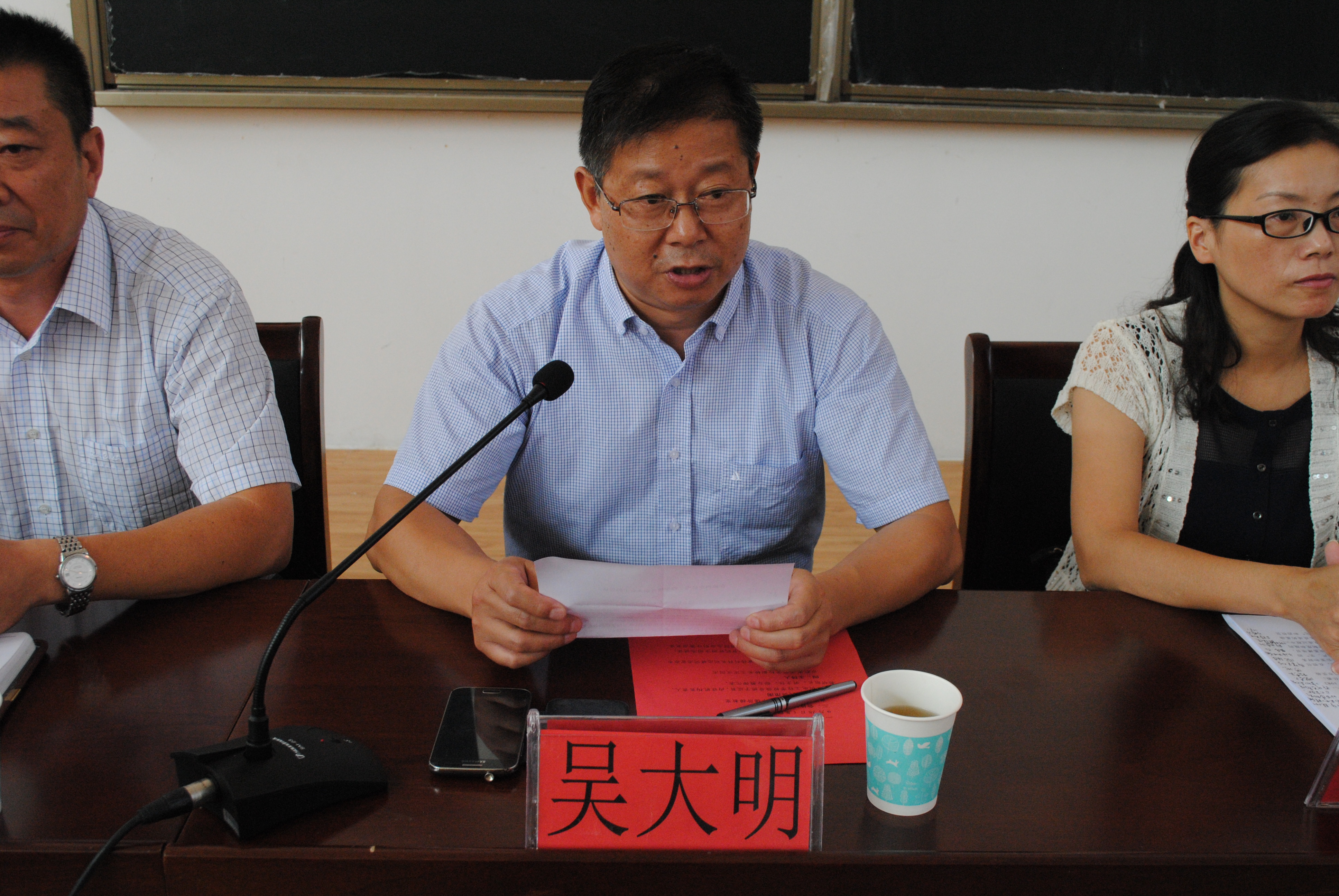 刘忠林科长宣读了市委市教体工委文件,任命邹全胜同志为学校副校长(主持工作),张福兴同志为学校党委书记,免去吴大明校长、校党委副书记职务。