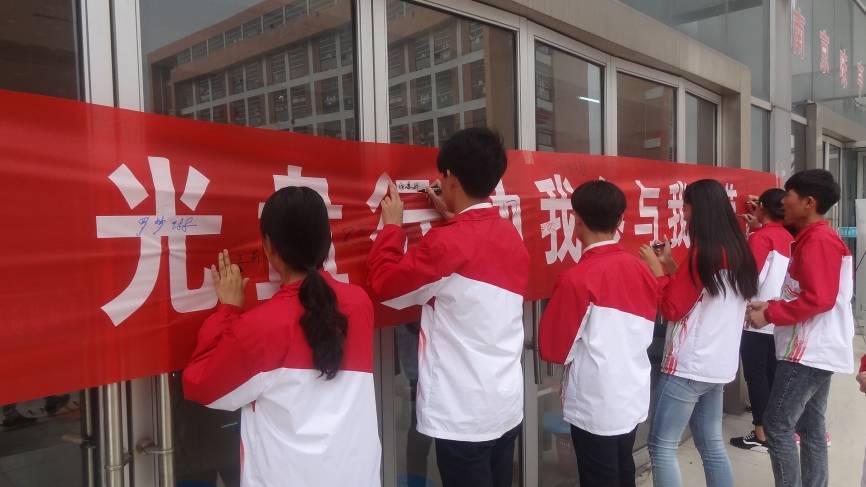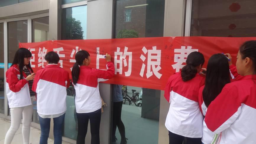 校团委、学生会于10月23日中午就餐时间在食堂门口举办 “光盘行动”签名活动。前来就餐的同学们在横幅上签名做为拒绝舌尖上浪费的誓言。