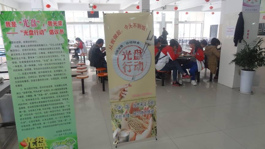 学生会以宣传海报的形式在教学楼向广大学生宣传节约粮食,同时在食堂门口张贴“光盘行动“倡议书和精心制作的宣传展板,扩大了宣传覆盖面。