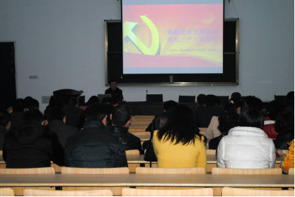 2015年12月10日下午,根据学校党委的安排,结合当前正在广泛深入开展的学习十八届五中全会精神的有关要求,校党委书记张福兴在教学楼阶梯教室利用多媒体上了一堂精彩的专题教育党课。全体党员、发展对象、入党积极分子100余人聆听了报告。活动由校党委副书记、副校长邹全胜主持。