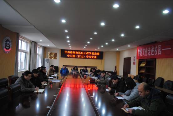 1月12日,滁州市机电工程学校召开党委中心组(扩大)学习会,学校党委成员、各支委委员参加了会议,会议由校党委书记张福兴同志主持。