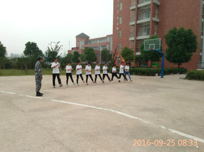 四面转法、蹲下、跨立、稍息、齐步走、正步走、解散、集合等既定训练科目已经很好的开展开来。教官将自身最好的训练成果教给学生,与此同时,学生也是认真的学。所有人都可以感受到来自四面八方因军训而张扬起来的的朝气蓬勃。