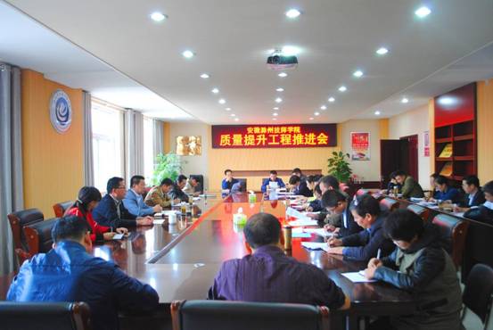 为了进一步加快教育质量提升工程项目的建设, 10月12日下午,学院召开了质量提升工程项目第二次推进会。滁州职业技术学院副院长、安徽滁州技师学院筹备组副组长汪上、筹备组成员张福兴、湛承鲲、余君琳、潘海波及省级示范校建设项目领导小组的成员出席了会议,会议由湛承鲲主持。