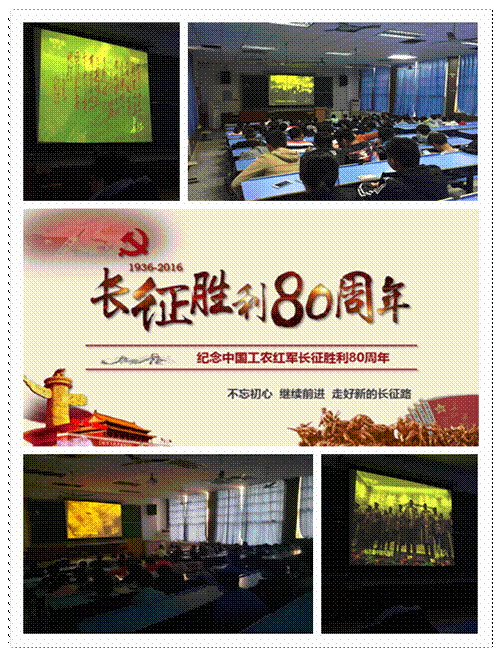 为纪念红军长征胜利80周年,不忘初心、继续前行,继承和弘扬长征精神,建筑与环境工程系团总支10月19号下午组织学生在北校区阶梯教室观看庆祝长征胜利80周年大型纪录片。从记录的历史文献资料和图片中,同学们了解到了许多革命先烈的光荣事迹,感受到中国共产党的伟大,同学们表示“不管身处何种时代,我们都要勇于肩负起自己的时代使命,把个人理想与时代发展结合起来,在这个社会价值观多元的时代,我们要继续传承英雄们的家国情怀与时代使命感,把长征精神发扬光大。