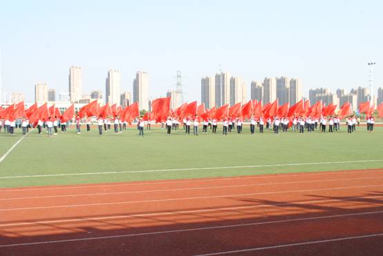 下午14点30分,沐浴着灿烂的朝阳,开幕式正式开始。伴随着《运动员进行曲》激昂的旋律,各系部同学以整齐的方阵在国旗队、鼓乐队、花束队和彩旗队的引领下,昂首步入会场。嘹亮的口号彰显出同学们的青春风采和高昂斗志。 庄严的升旗仪式后,滁州市职业技术学院副院长江洁致开幕词,她代表学院对运动会的胜利召开表示热烈的祝贺,对精心筹备运动会的工作人员表示诚挚的感谢,并向全体运动员、裁判员致以亲切的问候和美好的祝愿。江洁指出,学院举办运动会,是全面贯彻党的教育方针,促进学生德智体美全面发展的必然要求,是进一步推动和促进学校群众体育活动的发展,丰富校园文化生活的必然要求。江洁希望我们发扬 “团结、友谊、进步”的奥林匹克精神,把本届运动会办成隆重、热烈、充满活力的体育盛会,争取运动成绩和精神文明双丰收!