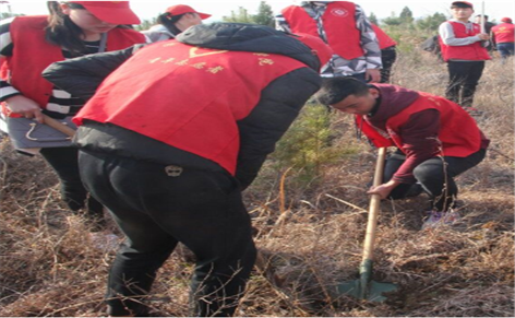 青年志愿者们早早地来到林场,活动现场人山人海,个个都很有精神,斗志昂扬。志愿者们来到指定植树点,各个摩拳擦掌:翻土、扶苗、培土……各司其职,忙得不亦乐乎,现场一片生机勃勃,春意盎然的热闹景象。