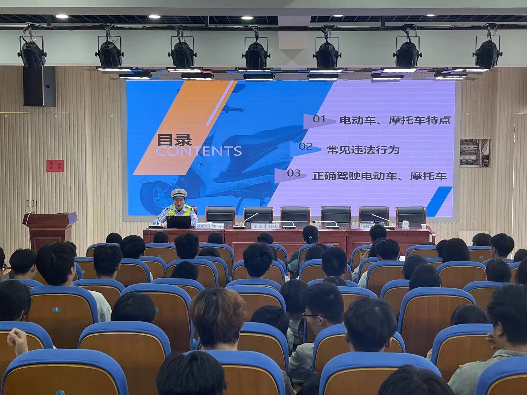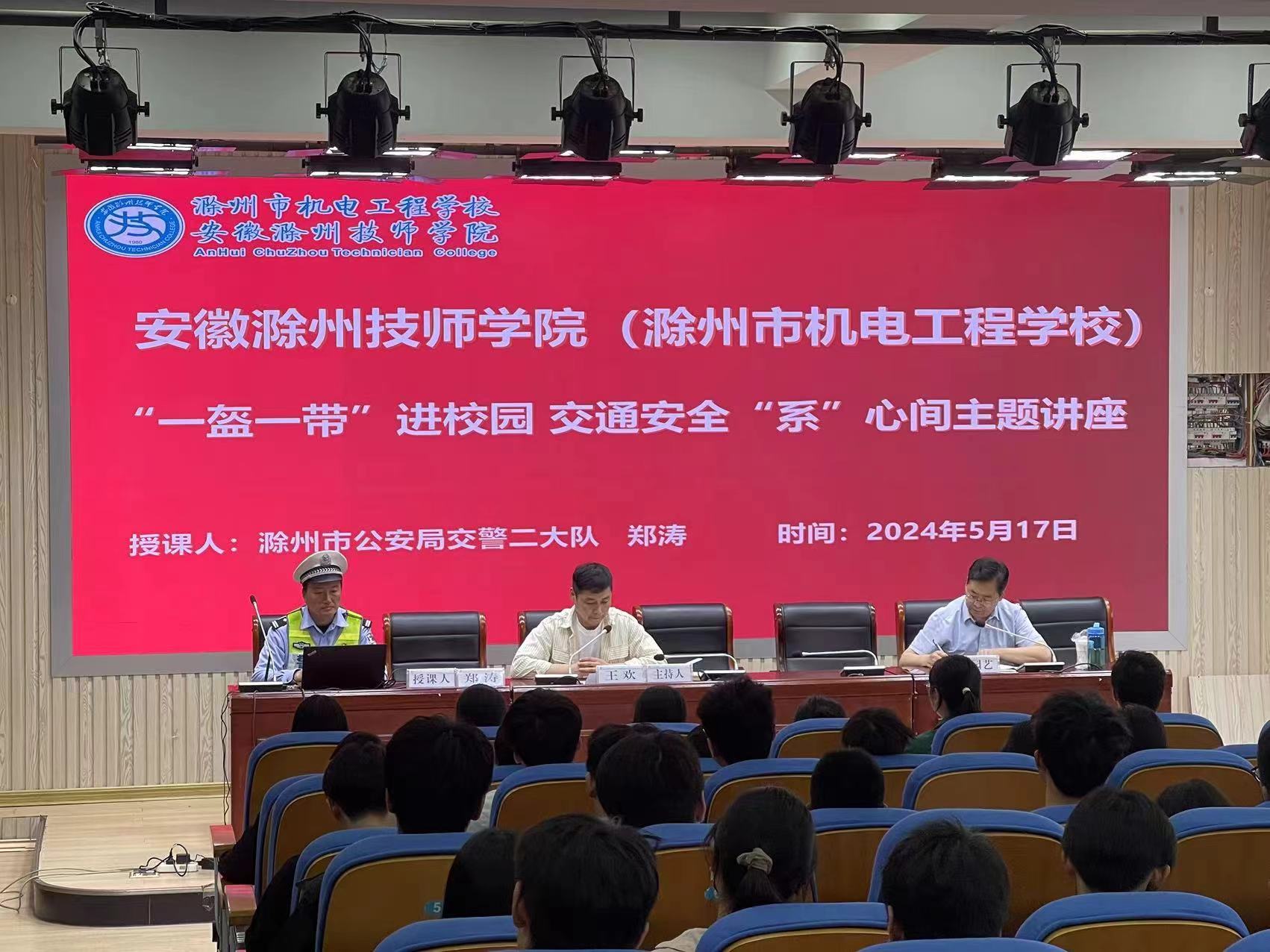 为积极响应关于营造“遵守交通法规,抵制交通陋习”的良好社会氛围,保障我校师生生命安全。5月17日,学校邀请了滁州市公安局交警支队六中队指导员郑涛,来校开展“一盔一带”进校园 交通安全“系”心间主题讲座。