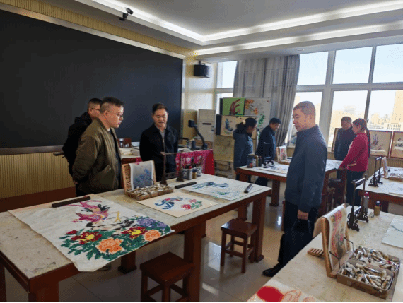 会后调研组一行人翻阅台账资料、实地参观非遗凤画传承基地,感受学校的办学特色和校园文化。