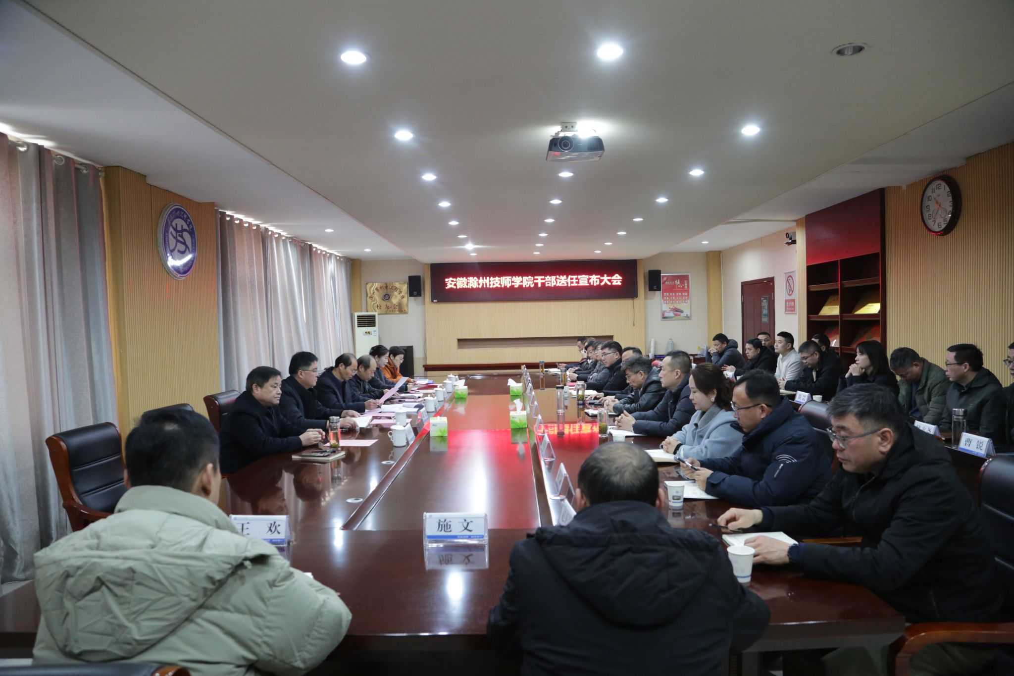1月6日上午,滁州技师学院干部送任宣布大会在老校区综合楼306会议室召开。滁州市人社局党组书记、局长朱爱农主持会议,市人社局党组成员、副局长曹昆斌,滁州技师学院党委书记陈通及校领导班子成员,学院中层以上干部参加会议。