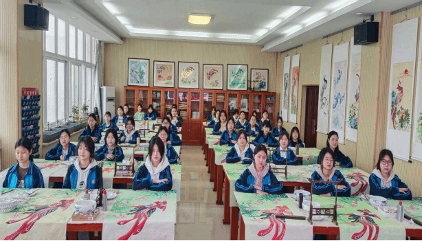 学院坚持科研与实践并行,以课题研究助推凤画传承教育提质升级。其中,省级重点课题《提质培优背景下中职学校“凤画”育人的创新实践研究》获2025年安徽省职业与成人教育科研规划课题优秀等次;《基于本土非遗文化传承的大中小学一体化课程体系构建与实践研究》于2025年12月顺利通过中期验收;《“价值引领 多元协同 培根铸魂”中职学校文化育人探索与实践》等相关教学成果更是斩获省级一、二等奖。同时,《百鸟朝凤》惊艳亮相联合国妇女协会国际慈善艺术展,非遗教学故事经《安徽日报》海外频道传播至国际舞台;《凤舞亭城》系列作品接连斩获上海国际博览会创意人文奖、深圳全国工艺美术大赛铜奖;《凤画技艺》登上全国职业技能大赛展演舞台,央视网对展演进行全球直播。一系列丰硕成果,为非遗进校园提供了扎实的理论支撑与实践范式。