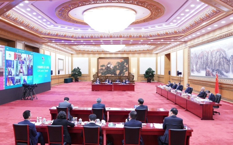 11月21日晚,国家主席习近平在北京以视频方式出席二十国集团领导人第十五次峰会第一阶段会议并发表重要讲话。新华社记者 王晔 摄