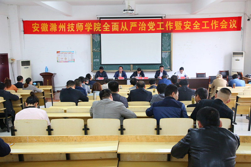 4月11日下午,安徽滁州技师学院2018年全面从严治党工作会议在综合楼阶梯教室召开。学院党政领导、各系部处室负责人、办公室、组织人事处、招生就业处等处室全体人员和学院各党支部支委参加了会议。学院党委书记、院长汪上主持会议。