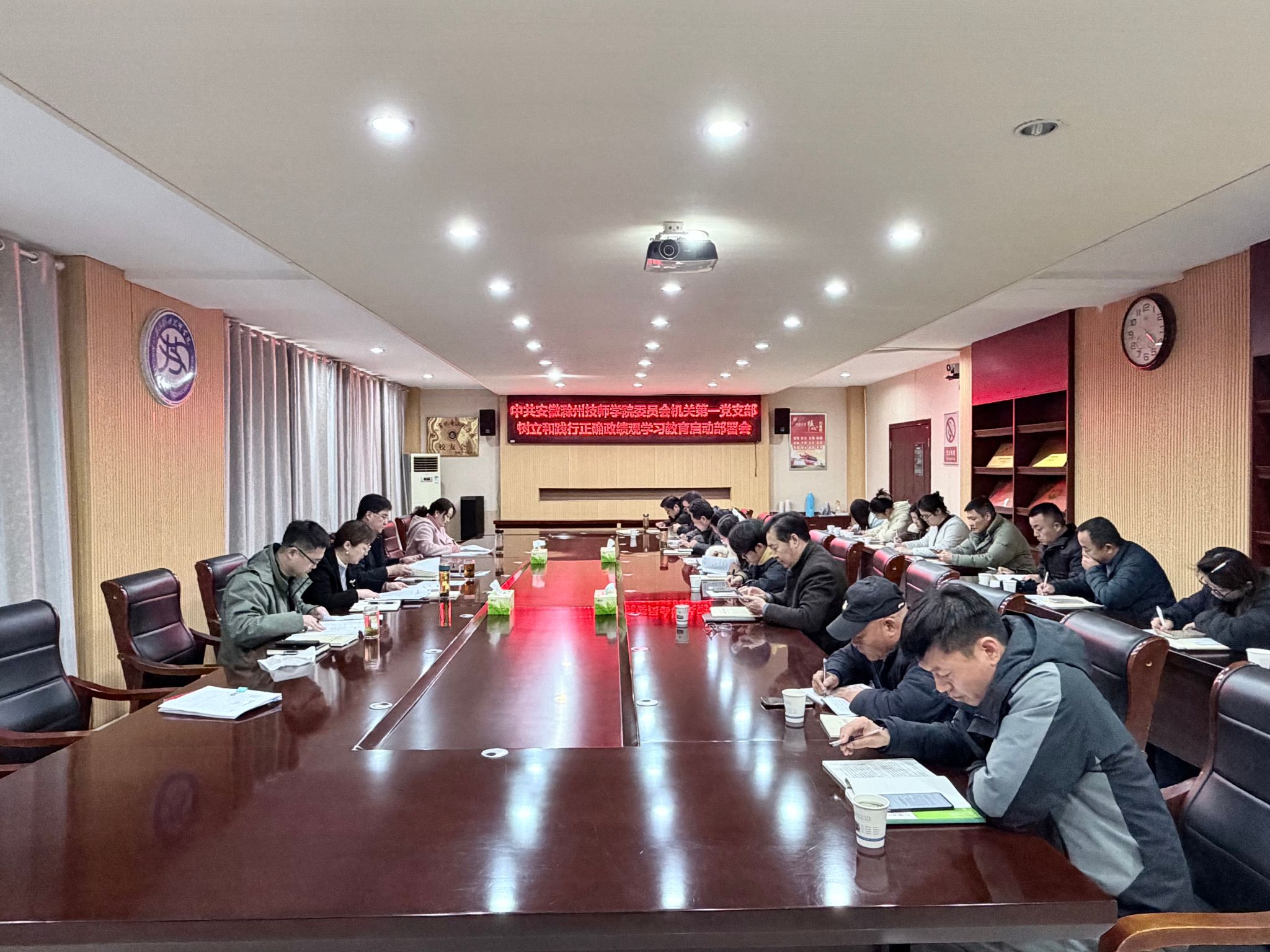 会议强调,在全党开展树立和践行正确政绩观学习教育,是以习近平同志为核心的党中央作出的重大决策部署,是今年党的建设的重要任务,全体党员同志要深刻认识开展这次学习教育的极端重要性。要准确把握学习教育的目标要求和关键环节,全面贯彻“立党为公、为民造福、科学决策、真抓实干”总要求,坚持“学查改”一体推进,在“深学、真查、实改”上下真功夫、求真实效;要在“建章立制”上下功夫、求长效,对学校各项规章制度进行一次全面“体检”,把学习教育成果固化为长期遵循的制度规矩;要广泛接受群众监督,主动倾听师生呼声,畅通意见建议渠道,自觉接受群众评判,让学习教育过程可监督、结果可检验;要深化不正之风整治,聚焦形式主义、官僚主义等突出问题,从严纠治政绩观错位、责任落实不到位、工作作风不实等现象,持续营造风清气正的育人环境。