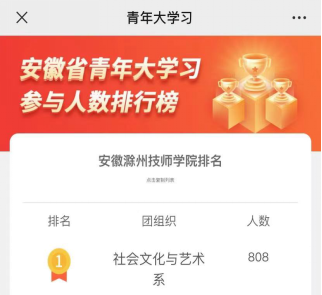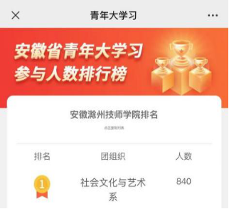 “学习新思想,争做新青年,今年是中国共产党成立一百周年……”自3月15日第十一季青年大学习网上主题团课上线以来,安徽滁州技师学院社会文化艺术系积极动员青年们主动参与,社会文化艺术系共有800多名青年参与学习。