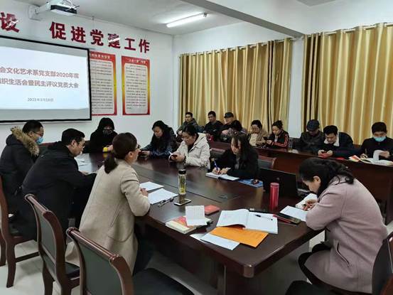 3月16日,社会文化艺术系党支部在行政楼302会议室召开2020年度组织生活会和民主评议党员大会。会议由党支部书记张梅主持,校党委委员、副校长余君琳同志到会指导。