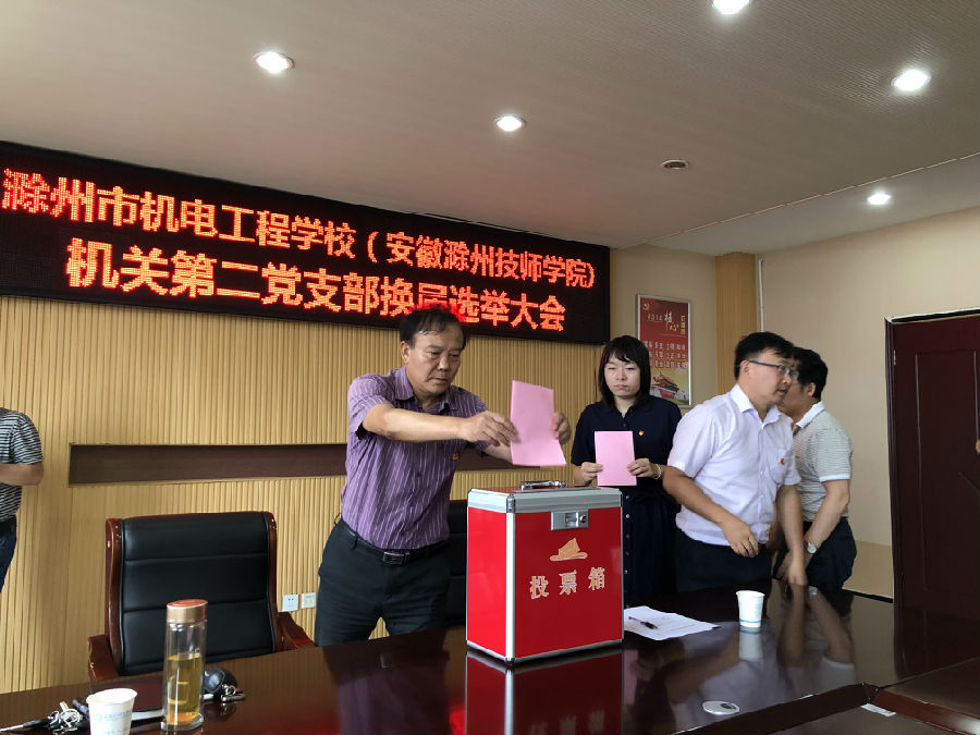 会议通过了机关第二党支部换届选举实施办法及监票人、计票人名单,全体党员以无记名投票、差额选举的办法选举产生了由王鑫、方芳、曹锐三人组成的新一届机关第二党支部委员会。在向大会宣布选举结果后,召开了新一届支部委员会一次会议。