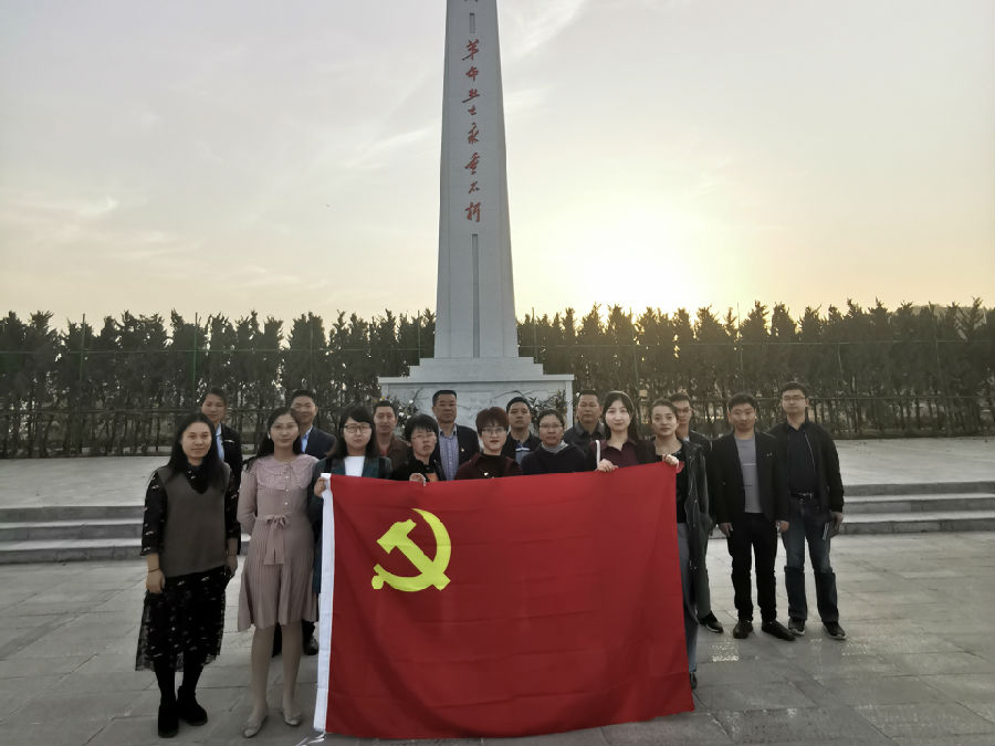 在革命烈士纪念碑前,支部全体党员共同追忆、缅怀革命烈士。在鲜红的党旗下,党支部书记张永海领誓,全体党员重温入党誓词。