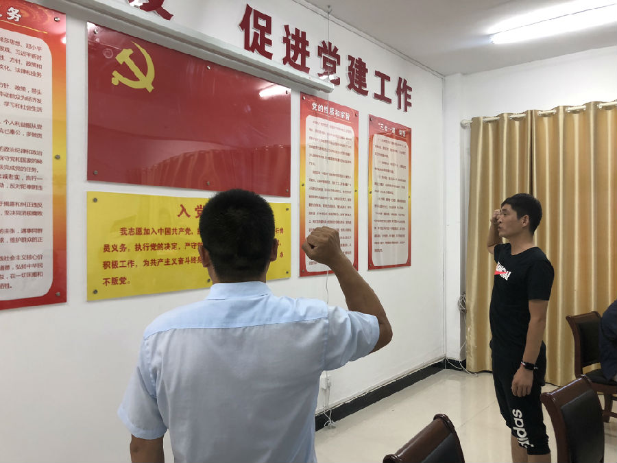 宣誓完毕后,王鑫同志给预备党员肖永同志提出了几点要求:一要认真学习党章党规和党的基本理论知识;二要时刻按照共产党员的标准严格要求自己;三要“不忘初心,牢记使命”,践行党的根本宗旨,发挥党员先锋模范作用。