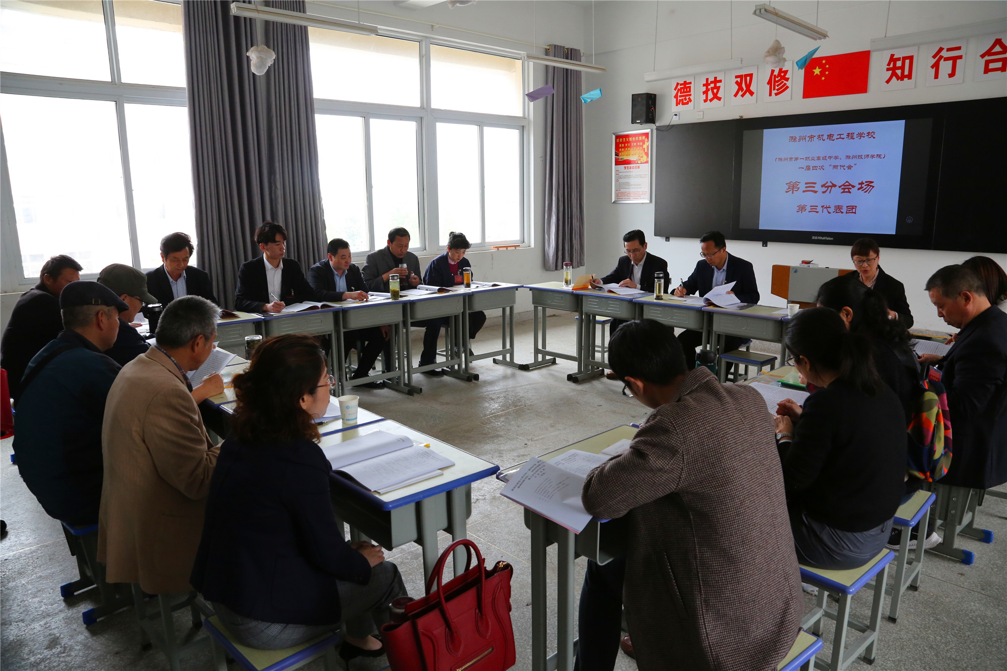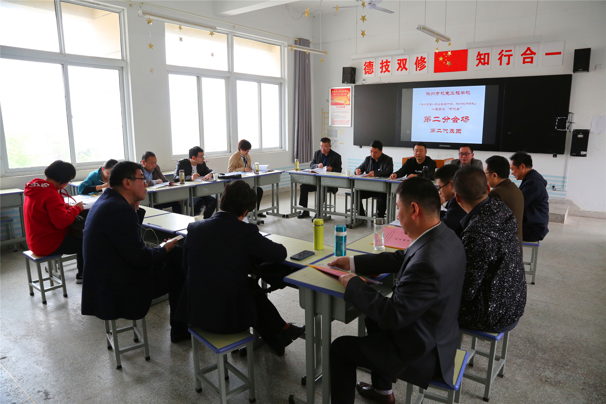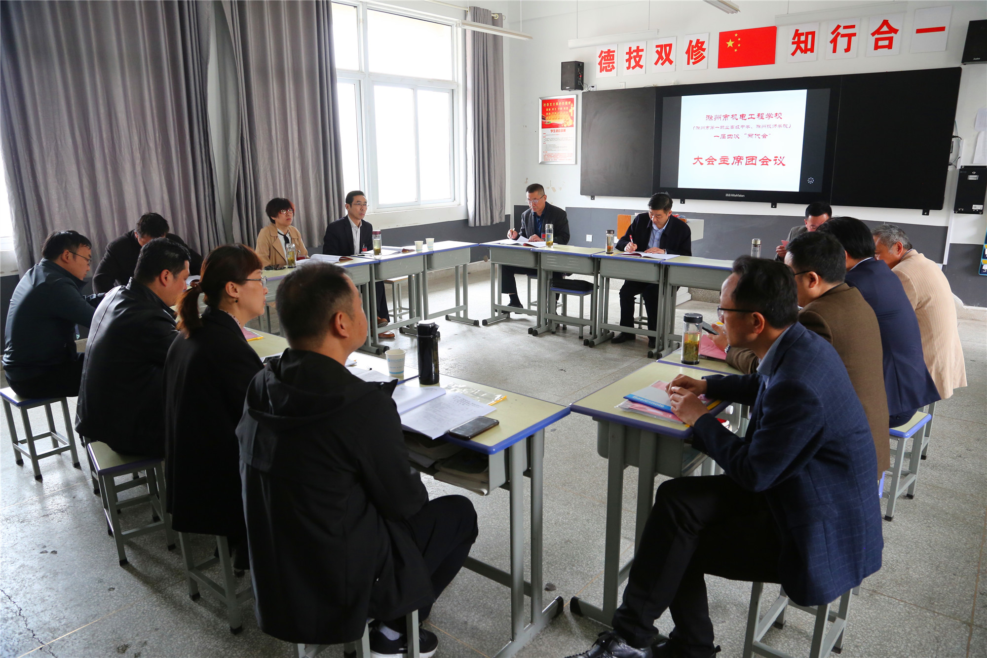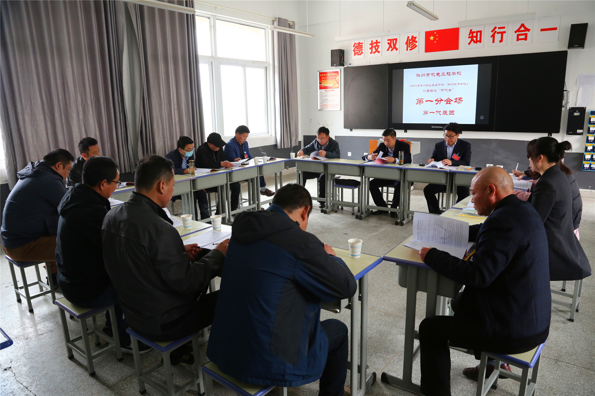 上午12时05分,学校一届四次教职工代表大会暨工会会员代表大会在雄壮的《国际歌》声中胜利闭幕。