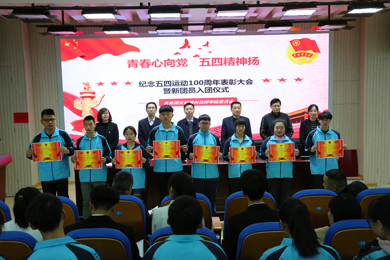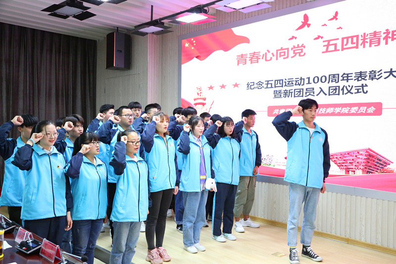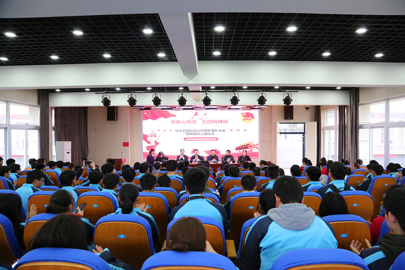 学校举行“青春心向党 五四精神扬--纪念五四运动100周年表彰大会暨新团员入团仪式活动”